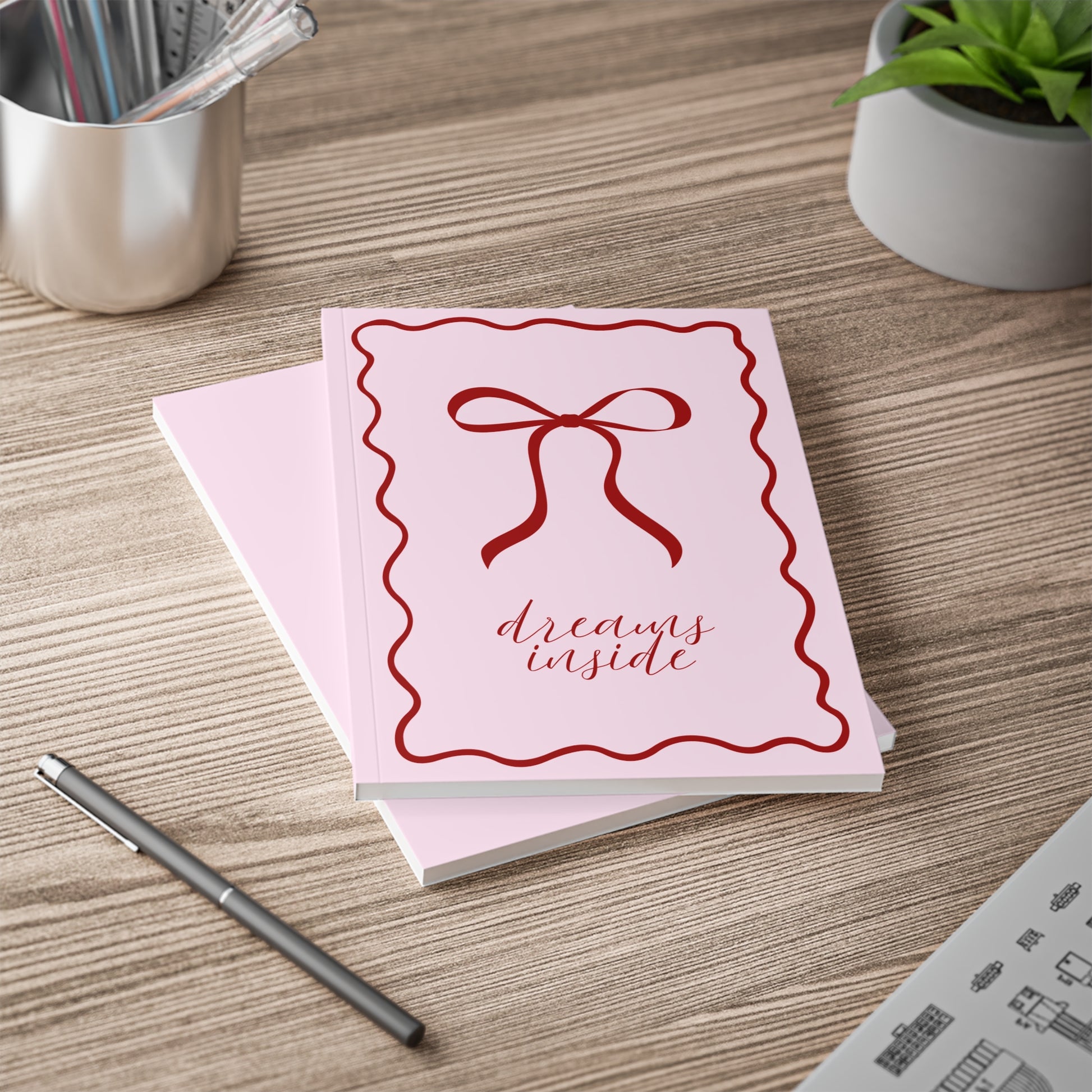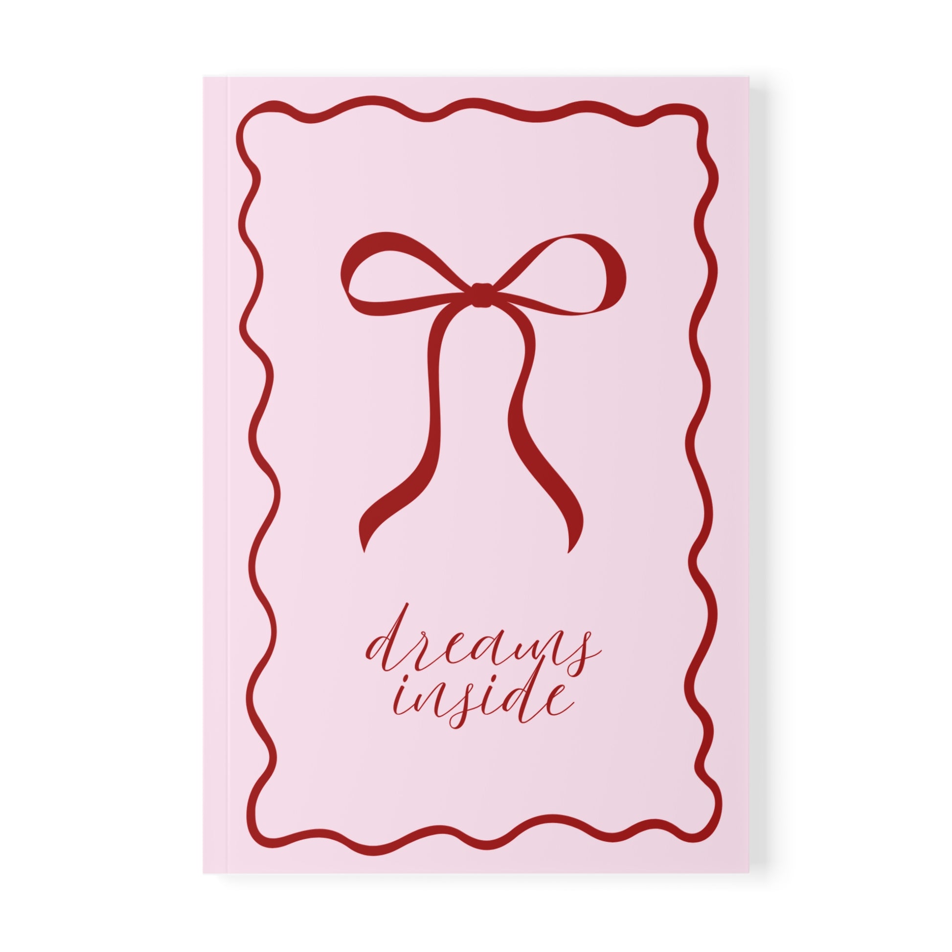 Let your thoughts, plans, and daydreams flow in style with the Dreams Inside Notebook. Designed in a delicate coquette aesthetic, this soft pink A5 journal features a dainty bow and frame design with the words “dreams inside” across the cover. Feminine and charming, it’s the perfect place for journaling, note-taking, or capturing late-night musings.